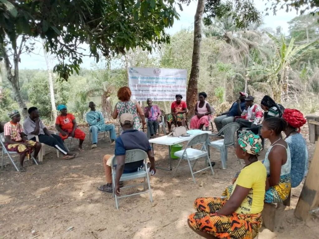 Stakeholders committee meeting at Bumpeh, Moyamba District on Promoting Apiculture to Improve Sustainable Livelihood as Incentives for Conservation of Yawri Bay in Sierra Leone. Project funded by CEPF.